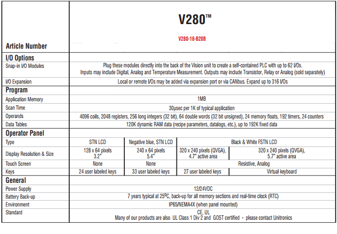 PLC UNITRONICS - V280
