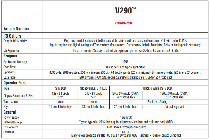 PLC UNITRONICS - V290