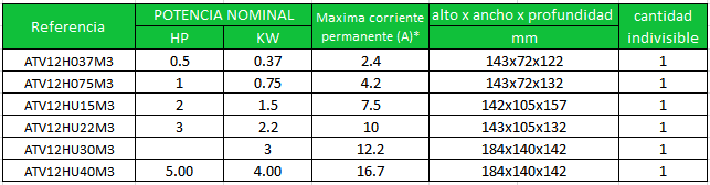 Codigo: ATV12H037M3, ATV12H075M3, ATV12HU15M3, ATV12HU22M3,ATV12HU30M3, ATV12HU40M3